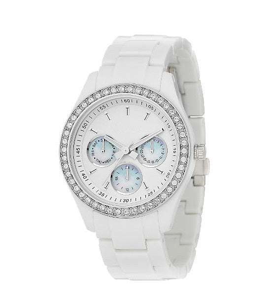 Nothing says style like the combination of fake diamonds with brightly colored plastic. Introducing the new Plastic Line from Ego Watch. In Lemon, Orange, White & Pink.